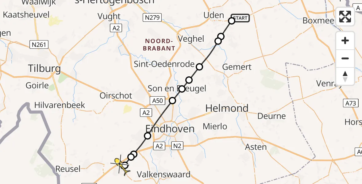 Op maandag 9 december 2024 om 15:29 is er een Traumahelikopter vertrokken van Vliegbasis Volkel naar Eersel. Het gaat om de Traumahelikopter met registratienummer PH-HVB. De vlucht duurde 11 minuten. Het toestel heeft in die periode 44 kilometer afgelegd met een gemiddelde snelheid van 231 kilometer per uur op een maximale vlieghoogte van 229 meter.