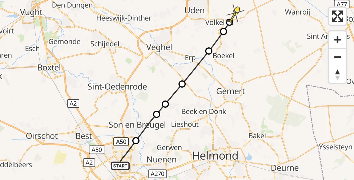 Op donderdag 13 maart 2025 om 20:28 is er een Traumahelikopter vertrokken van Eindhoven naar Vliegbasis Volkel. Het gaat om de Traumahelikopter met registratienummer PH-MAA. De vlucht duurde 9 minuten. Het toestel heeft in die periode 26 kilometer afgelegd met een gemiddelde snelheid van 171 kilometer per uur op een maximale vlieghoogte van 572 meter.