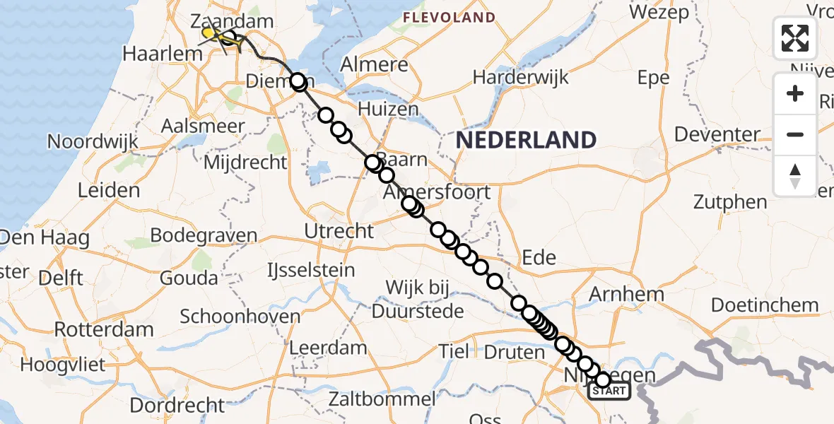 Op zaterdag 5 april 2025 om 18:50 is er een Traumahelikopter vertrokken van Radboud Universitair Medisch Centrum naar Amsterdam Heliport. Het gaat om de Traumahelikopter met registratienummer PH-DOC. De vlucht duurde 31 minuten. Het toestel heeft in die periode 101 kilometer afgelegd met een gemiddelde snelheid van 198 kilometer per uur op een maximale vlieghoogte van 251 meter.