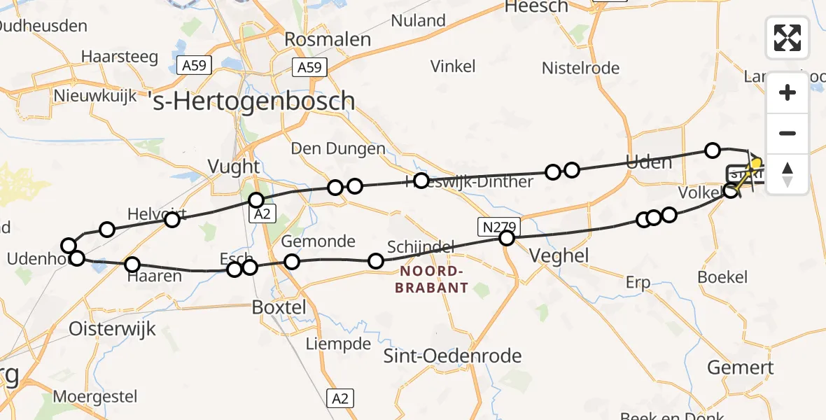 Op zaterdag 5 april 2025 om 22:25 is er een Traumahelikopter vertrokken van Vliegbasis Volkel naar Vliegbasis Volkel. Het gaat om de Traumahelikopter met registratienummer PH-MAA. De vlucht duurde 26 minuten. Het toestel heeft in die periode 77 kilometer afgelegd met een gemiddelde snelheid van 181 kilometer per uur op een maximale vlieghoogte van 290 meter.