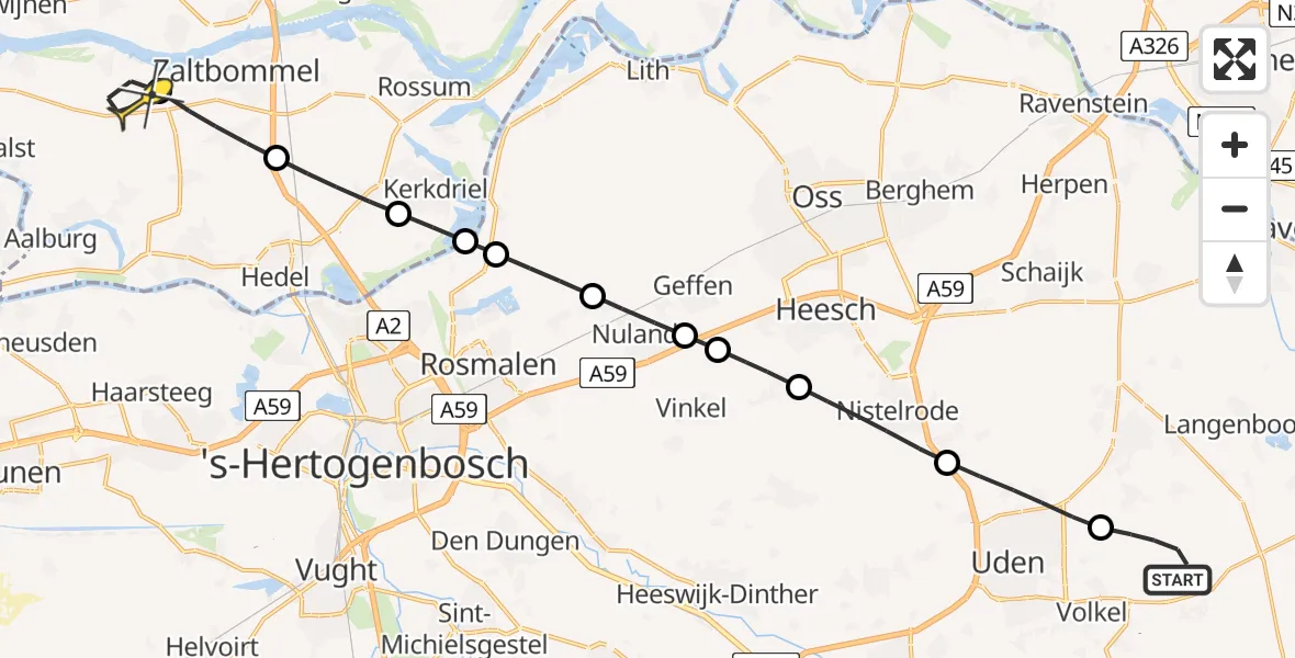 Op zaterdag 5 april 2025 om 23:27 is er een Traumahelikopter vertrokken van Vliegbasis Volkel naar Gameren. Het gaat om de Traumahelikopter met registratienummer PH-MAA. De vlucht duurde 11 minuten. Het toestel heeft in die periode 42 kilometer afgelegd met een gemiddelde snelheid van 233 kilometer per uur op een maximale vlieghoogte van 282 meter.