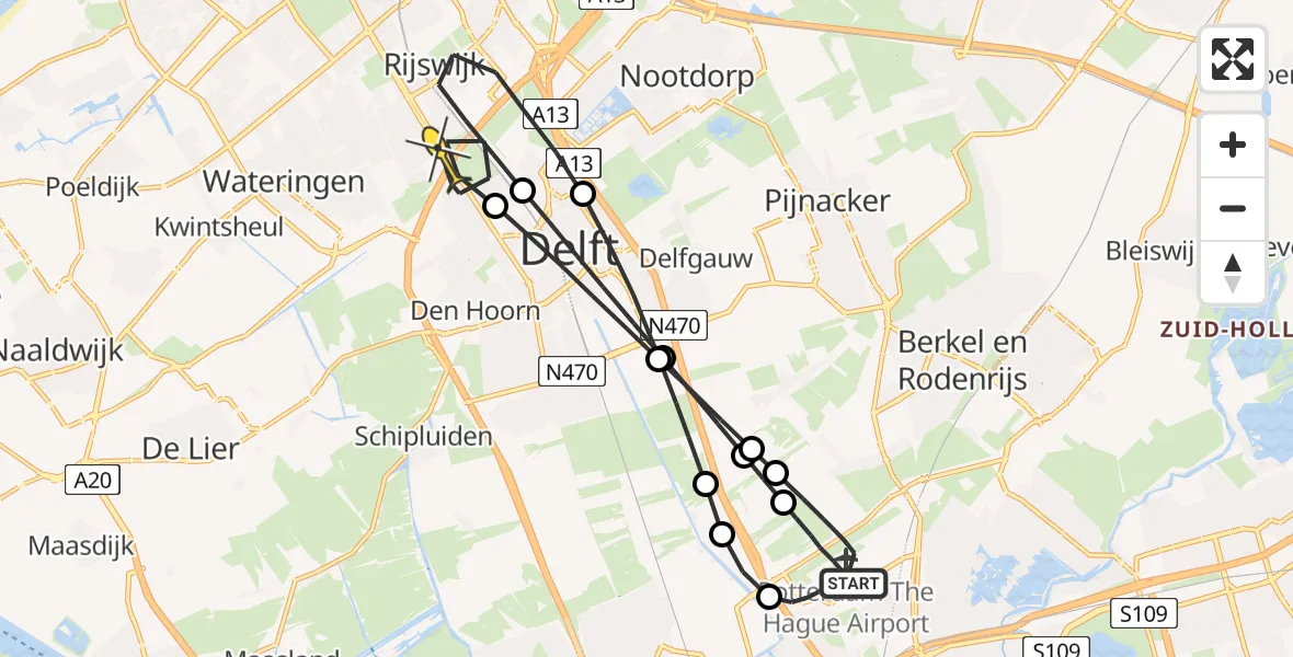 Op woensdag 9 april 2025 om 23:45 is er een Traumahelikopter vertrokken van Rotterdam The Hague Airport naar Rijswijk. Het gaat om de Traumahelikopter met registratienummer PH-UMC. De vlucht duurde 16 minuten. Het toestel heeft in die periode 44 kilometer afgelegd met een gemiddelde snelheid van 160 kilometer per uur op een maximale vlieghoogte van 259 meter.