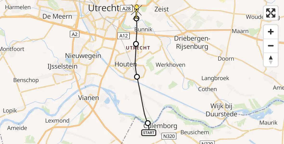 Op donderdag 10 april 2025 om 16:49 is er een Traumahelikopter vertrokken van Culemborg naar Universitair Medisch Centrum Utrecht. Het gaat om de Traumahelikopter met registratienummer PH-TTR. De vlucht duurde 6 minuten. Het toestel heeft in die periode 15 kilometer afgelegd met een gemiddelde snelheid van 143 kilometer per uur op een maximale vlieghoogte van 175 meter.