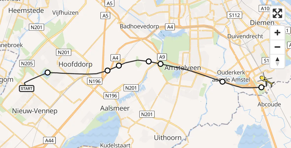 Op vrijdag 11 april 2025 om 18:56 is er een Traumahelikopter vertrokken van Nieuw-Vennep naar Academisch Medisch Centrum (AMC). Het gaat om de Traumahelikopter met registratienummer PH-DOC. De vlucht duurde 8 minuten. Het toestel heeft in die periode 26 kilometer afgelegd met een gemiddelde snelheid van 204 kilometer per uur op een maximale vlieghoogte van 160 meter.
