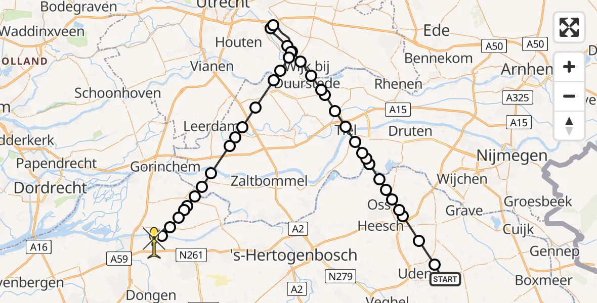 Op zaterdag 12 april 2025 om 10:47 is er een Traumahelikopter vertrokken van Vliegbasis Volkel naar Waspik. Het gaat om de Traumahelikopter met registratienummer PH-TTR. De vlucht duurde 28 minuten. Het toestel heeft in die periode 104 kilometer afgelegd met een gemiddelde snelheid van 222 kilometer per uur op een maximale vlieghoogte van 335 meter.