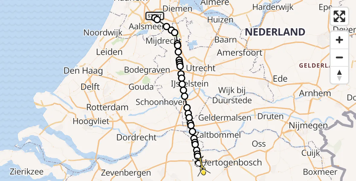 Op zaterdag 12 april 2025 om 19:36 is er een Politiehelikopter vertrokken van Schiphol naar Drunen. Het gaat om de Politiehelikopter met registratienummer PH-PXX. De vlucht duurde 24 minuten. Het toestel heeft in die periode 78 kilometer afgelegd met een gemiddelde snelheid van 194 kilometer per uur op een maximale vlieghoogte van 396 meter.