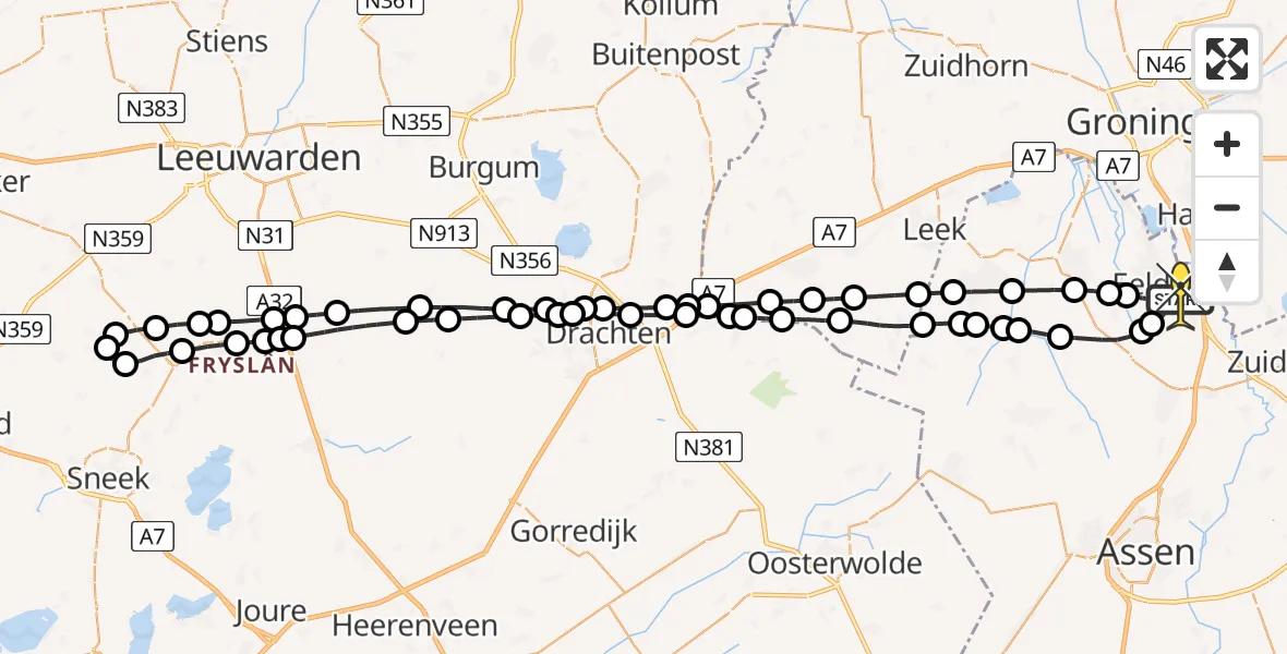 Op zaterdag 12 april 2025 om 21:25 is er een Traumahelikopter vertrokken van Groningen Airport Eelde naar Groningen Airport Eelde. Het gaat om de Traumahelikopter met registratienummer PH-HVB. De vlucht duurde 36 minuten. Het toestel heeft in die periode 126 kilometer afgelegd met een gemiddelde snelheid van 210 kilometer per uur op een maximale vlieghoogte van 472 meter.