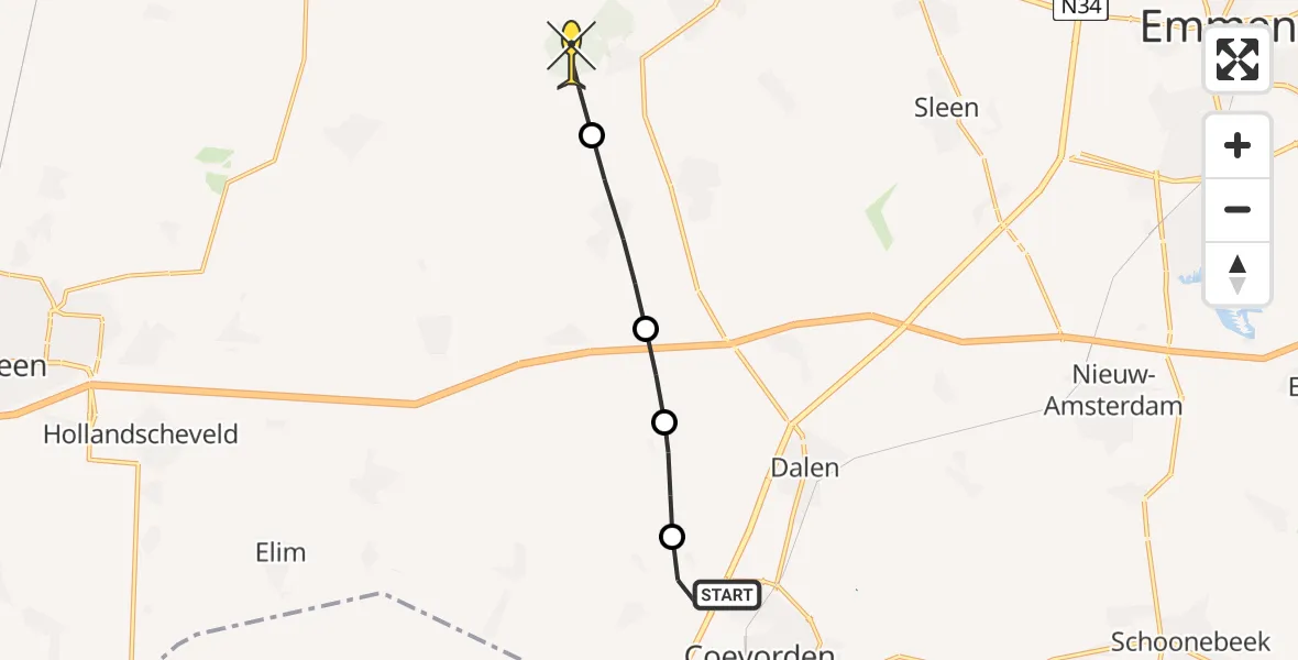Op zondag 13 april 2025 om 7:58 is er een Traumahelikopter vertrokken van Coevorden naar Meppen. Het gaat om de Traumahelikopter met registratienummer PH-HVB. De vlucht duurde 4 minuten. Het toestel heeft in die periode 14 kilometer afgelegd met een gemiddelde snelheid van 208 kilometer per uur op een maximale vlieghoogte van 419 meter.