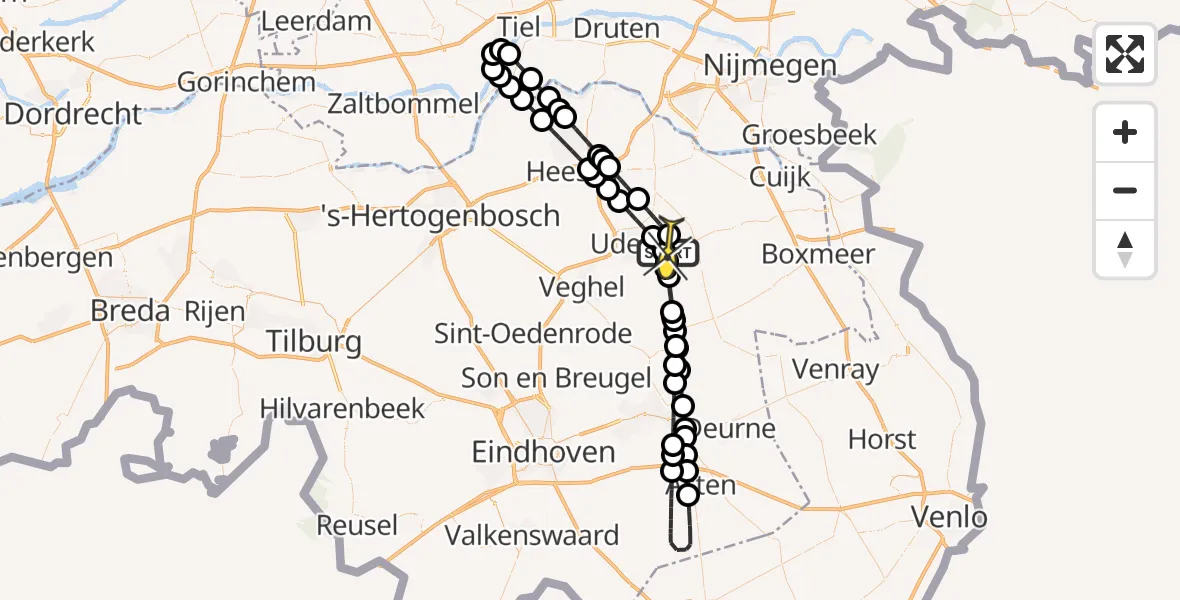 Op maandag 14 april 2025 om 12:18 is er een Traumahelikopter vertrokken van Vliegbasis Volkel naar Vliegbasis Volkel. Het gaat om de Traumahelikopter met registratienummer PH-TTR. De vlucht duurde 38 minuten. Het toestel heeft in die periode 137 kilometer afgelegd met een gemiddelde snelheid van 219 kilometer per uur op een maximale vlieghoogte van 351 meter.