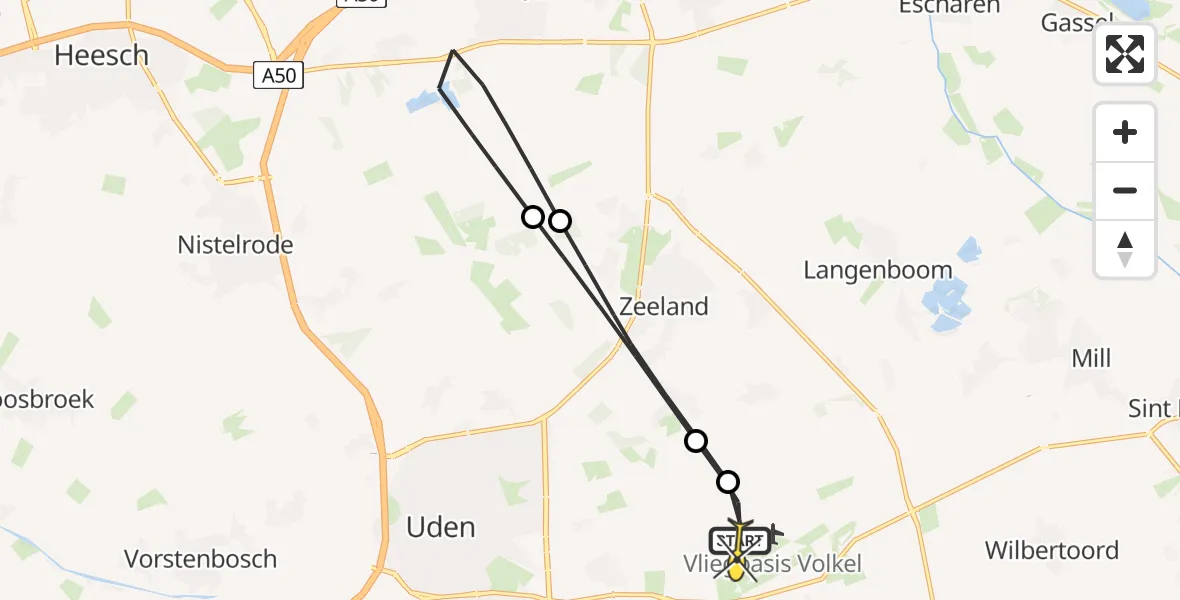 Op maandag 14 april 2025 om 14:43 is er een Traumahelikopter vertrokken van Vliegbasis Volkel naar Vliegbasis Volkel. Het gaat om de Traumahelikopter met registratienummer PH-TTR. De vlucht duurde 6 minuten. Het toestel heeft in die periode 21 kilometer afgelegd met een gemiddelde snelheid van 212 kilometer per uur op een maximale vlieghoogte van 366 meter.