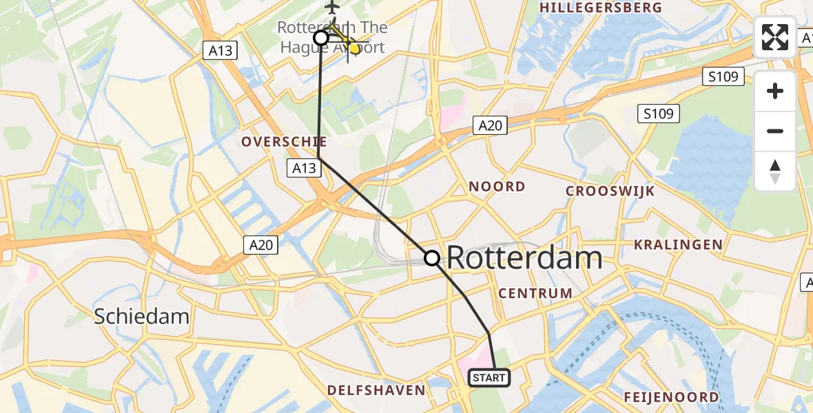 Op maandag 14 april 2025 om 18:43 is er een Traumahelikopter vertrokken van Erasmus MC naar Rotterdam The Hague Airport. Het gaat om de Traumahelikopter met registratienummer PH-UMC. De vlucht duurde 4 minuten. Het toestel heeft in die periode 6 kilometer afgelegd met een gemiddelde snelheid van 88 kilometer per uur op een maximale vlieghoogte van 366 meter.