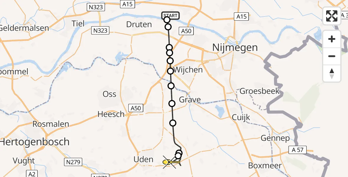Op dinsdag 15 april 2025 om 10:24 is er een Traumahelikopter vertrokken van Dodewaard naar Vliegbasis Volkel. Het gaat om de Traumahelikopter met registratienummer PH-TTR. De vlucht duurde 10 minuten. Het toestel heeft in die periode 29 kilometer afgelegd met een gemiddelde snelheid van 169 kilometer per uur op een maximale vlieghoogte van 472 meter.