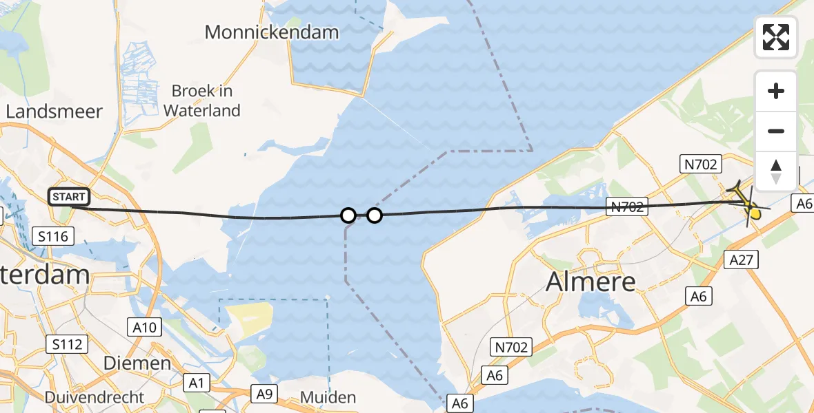 Op woensdag 16 april 2025 om 8:37 is er een Traumahelikopter vertrokken van Amsterdam naar Almere. Het gaat om de Traumahelikopter met registratienummer PH-DOC. De vlucht duurde 19 minuten. Het toestel heeft in die periode 27 kilometer afgelegd met een gemiddelde snelheid van 83 kilometer per uur op een maximale vlieghoogte van 305 meter.