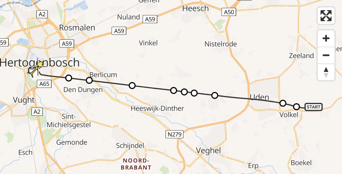 Op zaterdag 19 april 2025 om 2:37 is er een Traumahelikopter vertrokken van Vliegbasis Volkel naar 's-Hertogenbosch. Het gaat om de Traumahelikopter met registratienummer PH-TTR. De vlucht duurde 9 minuten. Het toestel heeft in die periode 29 kilometer afgelegd met een gemiddelde snelheid van 191 kilometer per uur op een maximale vlieghoogte van 411 meter.