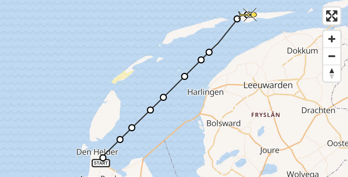 Op donderdag 24 april 2025 om 19:39 is er een Kustwachthelikopter vertrokken van Vliegveld De Kooy naar Ameland Airport Ballum. Het gaat om de Kustwachthelikopter met registratienummer PH-SAR. De vlucht duurde 32 minuten. Het toestel heeft in die periode 86 kilometer afgelegd met een gemiddelde snelheid van 162 kilometer per uur op een maximale vlieghoogte van 404 meter.