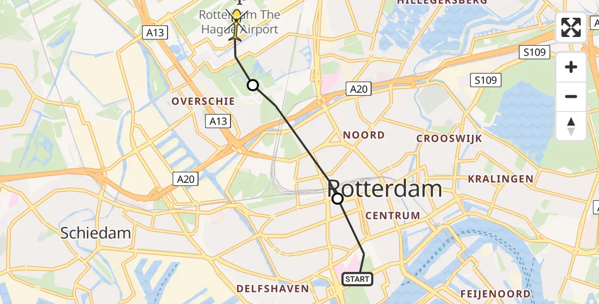 Op donderdag 24 april 2025 om 20:52 is er een Traumahelikopter vertrokken van Erasmus MC naar Rotterdam The Hague Airport. Het gaat om de Traumahelikopter met registratienummer PH-UMC. De vlucht duurde 3 minuten. Het toestel heeft in die periode 5 kilometer afgelegd met een gemiddelde snelheid van 94 kilometer per uur op een maximale vlieghoogte van 145 meter.
