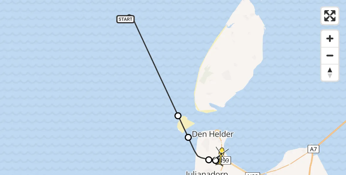 Op donderdag 24 april 2025 om 22:31 is er een Kustwachthelikopter vertrokken van naar Vliegveld De Kooy. Het gaat om de Kustwachthelikopter met registratienummer PH-SAR. De vlucht duurde 13 minuten. Het toestel heeft in die periode 35 kilometer afgelegd met een gemiddelde snelheid van 165 kilometer per uur op een maximale vlieghoogte van 91 meter.