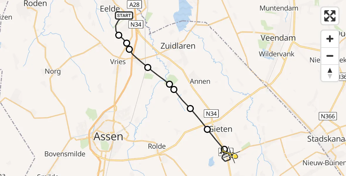 Op donderdag 1 mei 2025 om 3:51 is er een Traumahelikopter vertrokken van Groningen Airport Eelde naar Gasselte. Het gaat om de Traumahelikopter met registratienummer PH-HVB. De vlucht duurde 9 minuten. Het toestel heeft in die periode 26 kilometer afgelegd met een gemiddelde snelheid van 167 kilometer per uur op een maximale vlieghoogte van 290 meter.