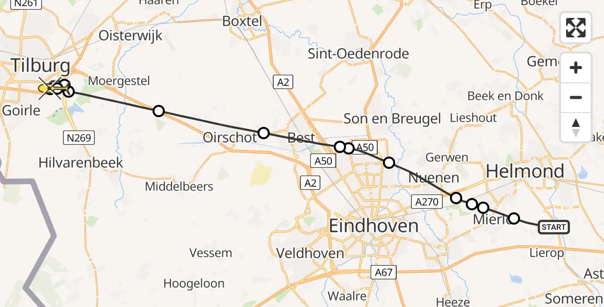 Op zaterdag 3 mei 2025 om 16:57 is er een Traumahelikopter vertrokken van Lierop naar Tilburg. Het gaat om de Traumahelikopter met registratienummer PH-TTR. De vlucht duurde 15 minuten. Het toestel heeft in die periode 45 kilometer afgelegd met een gemiddelde snelheid van 185 kilometer per uur op een maximale vlieghoogte van 305 meter.