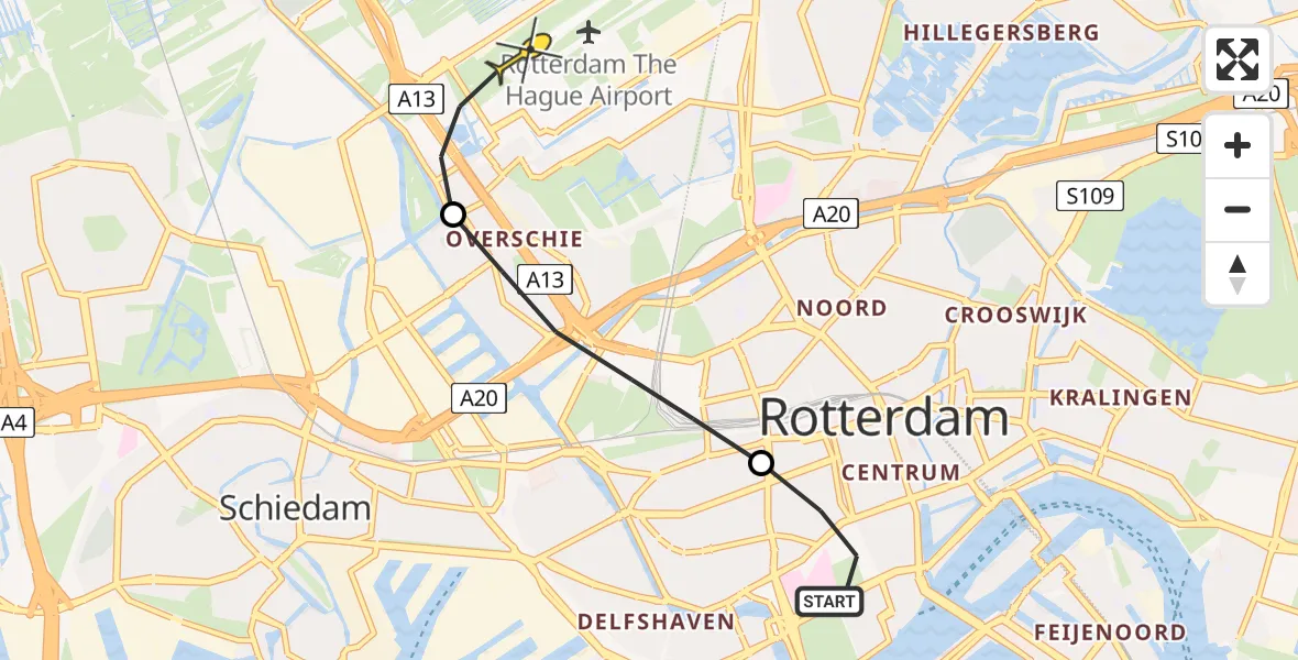 Op zaterdag 3 mei 2025 om 22:15 is er een Traumahelikopter vertrokken van Erasmus MC naar Rotterdam The Hague Airport. Het gaat om de Traumahelikopter met registratienummer PH-UMC. De vlucht duurde 5 minuten. Het toestel heeft in die periode 7 kilometer afgelegd met een gemiddelde snelheid van 89 kilometer per uur op een maximale vlieghoogte van 251 meter.