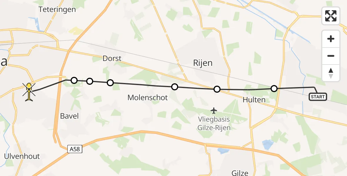 Op zondag 4 mei 2025 om 19:34 is er een Traumahelikopter vertrokken van Tilburg naar Breda. Het gaat om de Traumahelikopter met registratienummer PH-DOC. De vlucht duurde 5 minuten. Het toestel heeft in die periode 14 kilometer afgelegd met een gemiddelde snelheid van 160 kilometer per uur op een maximale vlieghoogte van 236 meter.
