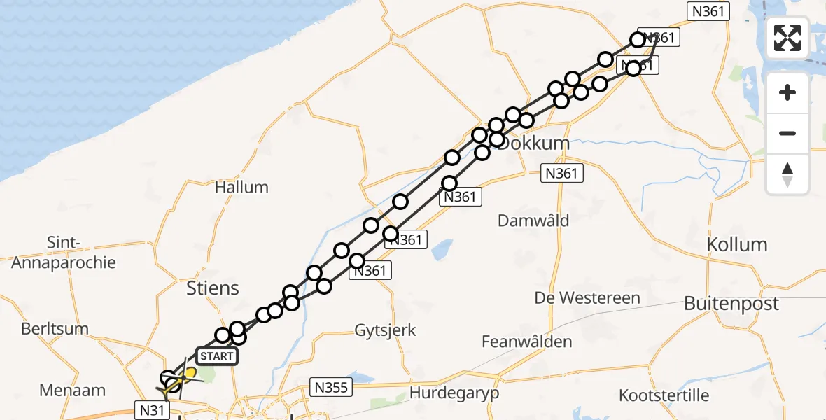 Routekaart van de vlucht: Ambulanceheli naar Leeuwarden, Koarnjumer Feart