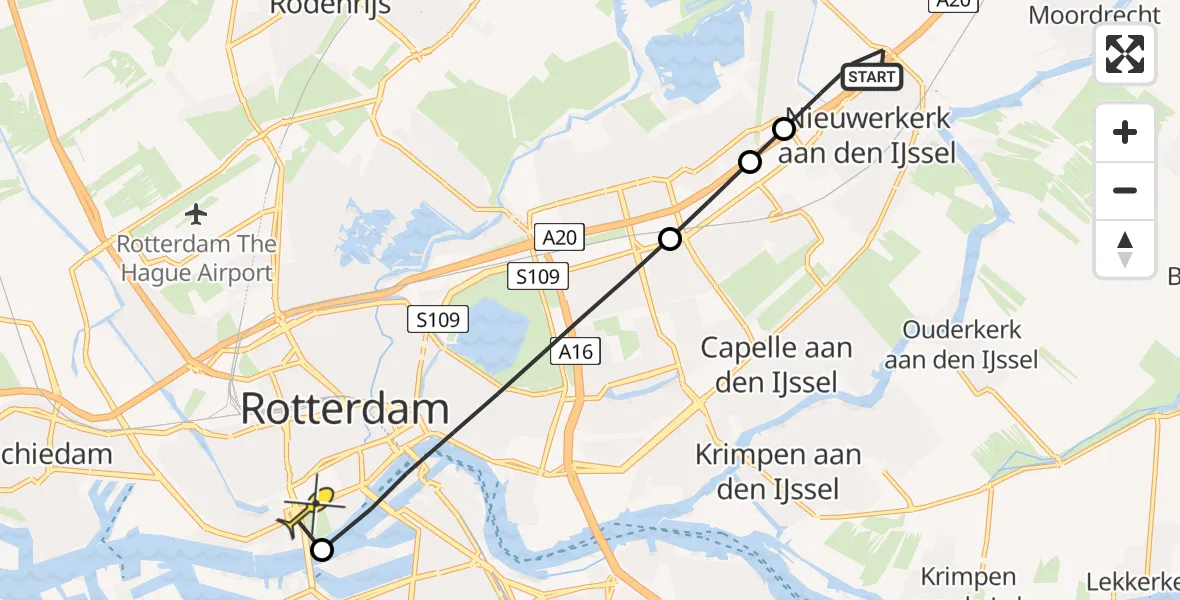 Op dinsdag 6 mei 2025 om 20:58 is er een Traumahelikopter vertrokken van Nieuwerkerk aan den IJssel naar Erasmus MC. Het gaat om de Traumahelikopter met registratienummer PH-UMC. De vlucht duurde 6 minuten. Het toestel heeft in die periode 15 kilometer afgelegd met een gemiddelde snelheid van 143 kilometer per uur op een maximale vlieghoogte van 244 meter.