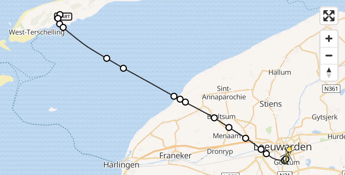 Op dinsdag 6 mei 2025 om 21:47 is er een Ambulancehelikopter vertrokken van Midsland naar Leeuwarden. Het gaat om de Ambulancehelikopter met registratienummer PH-HOW. De vlucht duurde 14 minuten. Het toestel heeft in die periode 44 kilometer afgelegd met een gemiddelde snelheid van 185 kilometer per uur op een maximale vlieghoogte van 244 meter.