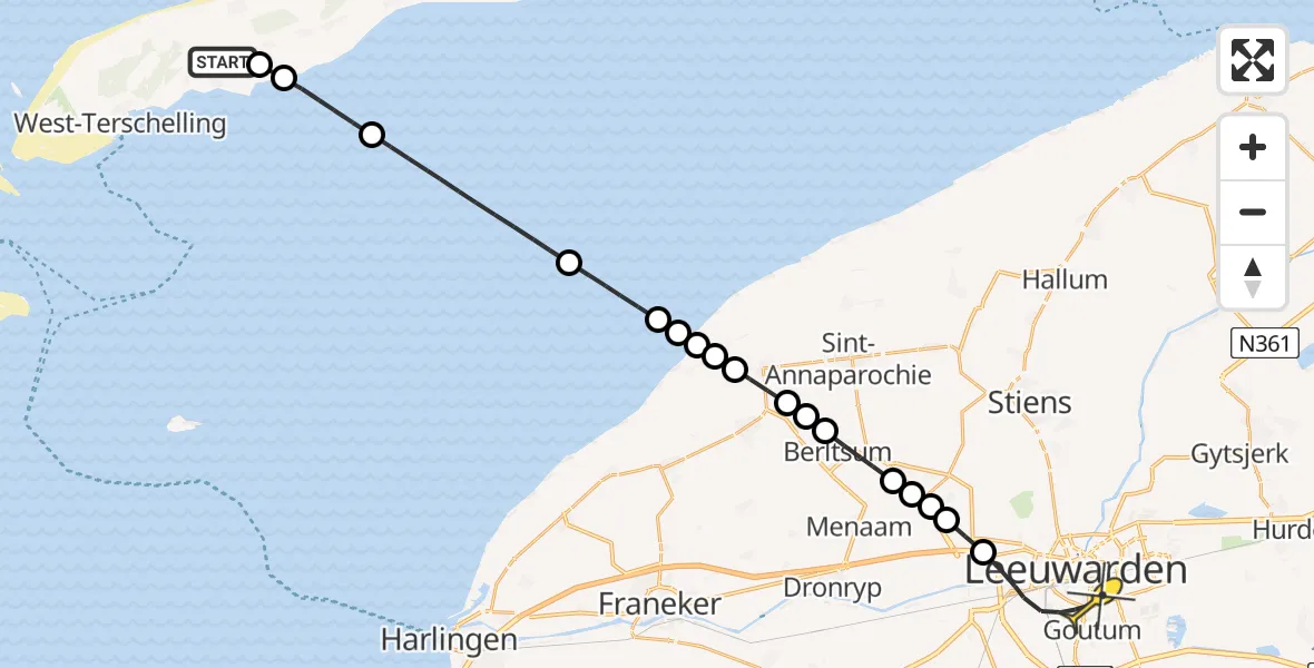 Op donderdag 8 mei 2025 om 12:07 is er een Ambulancehelikopter vertrokken van Midsland naar Leeuwarden. Het gaat om de Ambulancehelikopter met registratienummer PH-HOW. De vlucht duurde 15 minuten. Het toestel heeft in die periode 42 kilometer afgelegd met een gemiddelde snelheid van 166 kilometer per uur op een maximale vlieghoogte van 259 meter.