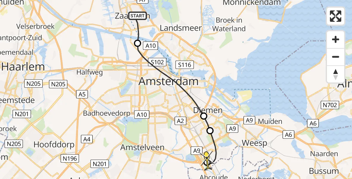 Op vrijdag 9 mei 2025 om 8:14 is er een Traumahelikopter vertrokken van Zaandam naar Academisch Medisch Centrum (AMC). Het gaat om de Traumahelikopter met registratienummer PH-DOC. De vlucht duurde 7 minuten. Het toestel heeft in die periode 22 kilometer afgelegd met een gemiddelde snelheid van 184 kilometer per uur op een maximale vlieghoogte van 168 meter.