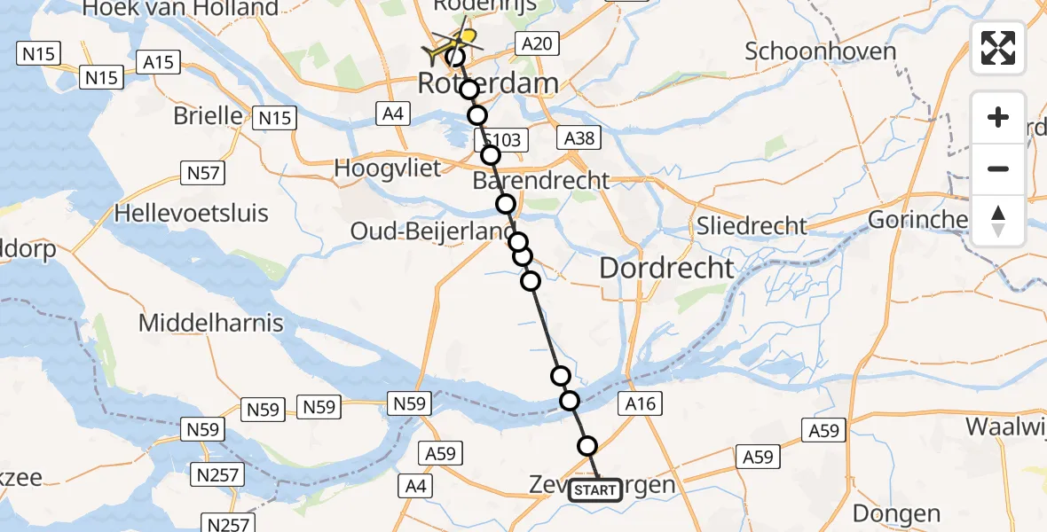 Op vrijdag 9 mei 2025 om 8:49 is er een Traumahelikopter vertrokken van Zevenbergen naar Rotterdam The Hague Airport. Het gaat om de Traumahelikopter met registratienummer PH-UMC. De vlucht duurde 12 minuten. Het toestel heeft in die periode 37 kilometer afgelegd met een gemiddelde snelheid van 190 kilometer per uur op een maximale vlieghoogte van 251 meter.