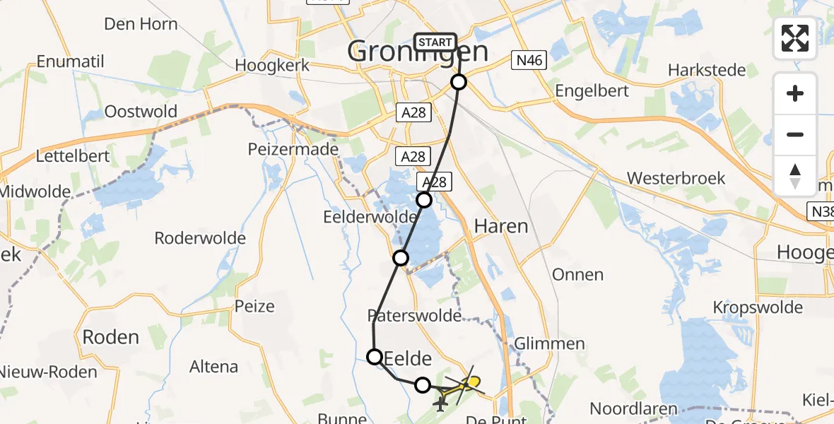 Op vrijdag 9 mei 2025 om 12:41 is er een Traumahelikopter vertrokken van Universitair Medisch Centrum Groningen naar Groningen Airport Eelde. Het gaat om de Traumahelikopter met registratienummer PH-HVB. De vlucht duurde 5 minuten. Het toestel heeft in die periode 14 kilometer afgelegd met een gemiddelde snelheid van 177 kilometer per uur op een maximale vlieghoogte van 137 meter.