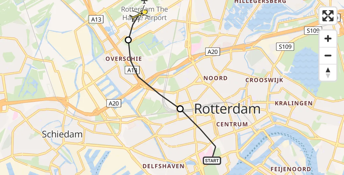 Op vrijdag 9 mei 2025 om 16:45 is er een Traumahelikopter vertrokken van Erasmus MC naar Rotterdam The Hague Airport. Het gaat om de Traumahelikopter met registratienummer PH-HVB. De vlucht duurde 3 minuten. Het toestel heeft in die periode 6 kilometer afgelegd met een gemiddelde snelheid van 102 kilometer per uur op een maximale vlieghoogte van 130 meter.