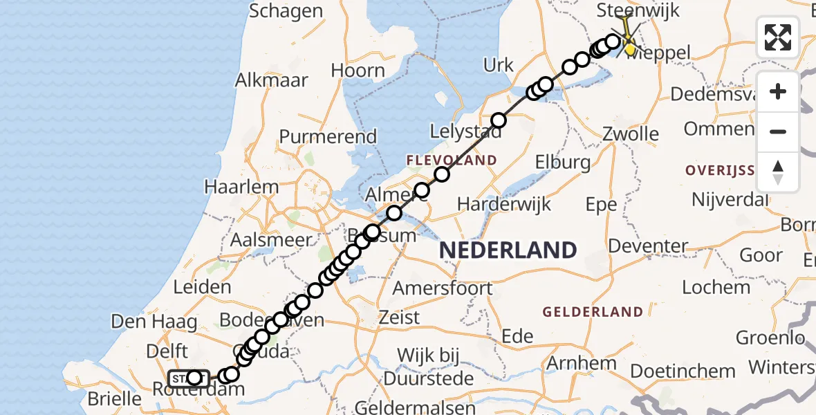 Op vrijdag 9 mei 2025 om 17:03 is er een Traumahelikopter vertrokken van Rotterdam The Hague Airport naar Giethoorn. Het gaat om de Traumahelikopter met registratienummer PH-HVB. De vlucht duurde 44 minuten. Het toestel heeft in die periode 145 kilometer afgelegd met een gemiddelde snelheid van 200 kilometer per uur op een maximale vlieghoogte van 267 meter.