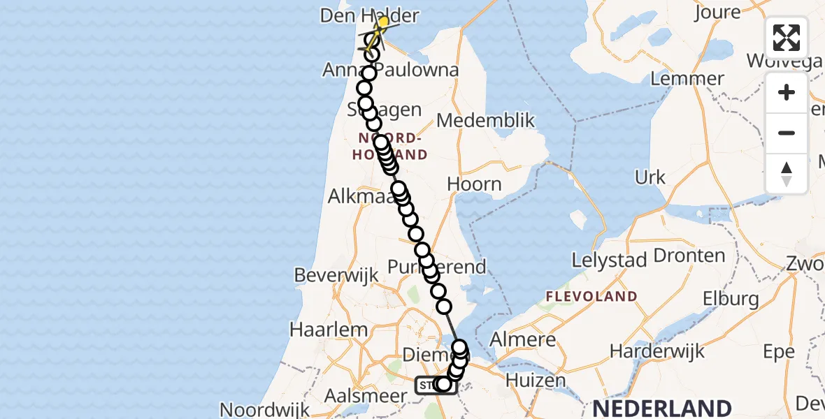 Op zaterdag 10 mei 2025 om 3:14 is er een Kustwachthelikopter vertrokken van Academisch Medisch Centrum (AMC) naar Vliegveld De Kooy. Het gaat om de Kustwachthelikopter met registratienummer PH-SAR. De vlucht duurde 51 minuten. Het toestel heeft in die periode 78 kilometer afgelegd met een gemiddelde snelheid van 92 kilometer per uur op een maximale vlieghoogte van 297 meter.