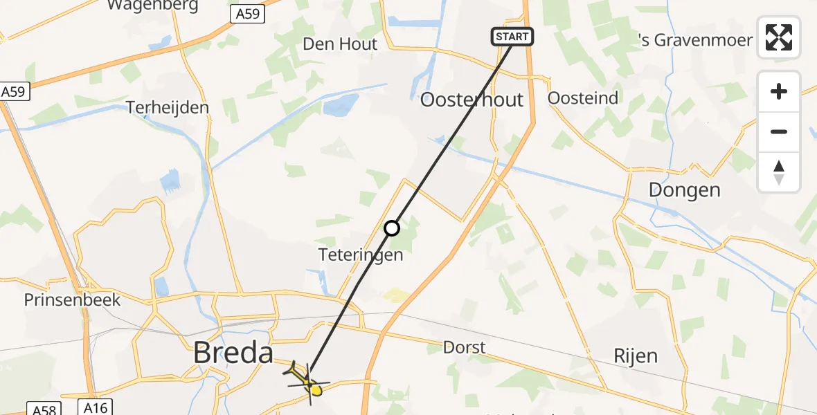 Op zaterdag 10 mei 2025 om 15:41 is er een Traumahelikopter vertrokken van Oosterhout naar Breda. Het gaat om de Traumahelikopter met registratienummer PH-UMC. De vlucht duurde 3 minuten. Het toestel heeft in die periode 10 kilometer afgelegd met een gemiddelde snelheid van 177 kilometer per uur op een maximale vlieghoogte van 130 meter.