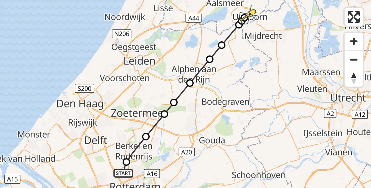 Op zaterdag 10 mei 2025 om 17:22 is er een Traumahelikopter vertrokken van Rotterdam The Hague Airport naar Uithoorn. Het gaat om de Traumahelikopter met registratienummer PH-UMC. De vlucht duurde 13 minuten. Het toestel heeft in die periode 42 kilometer afgelegd met een gemiddelde snelheid van 192 kilometer per uur op een maximale vlieghoogte van 190 meter.