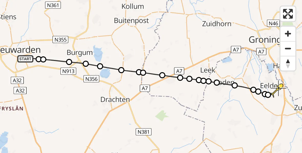 Op zondag 11 mei 2025 om 19:01 is er een Traumahelikopter vertrokken van Leeuwarden naar Groningen Airport Eelde. Het gaat om de Traumahelikopter met registratienummer PH-HVB. De vlucht duurde 16 minuten. Het toestel heeft in die periode 52 kilometer afgelegd met een gemiddelde snelheid van 198 kilometer per uur op een maximale vlieghoogte van 229 meter.