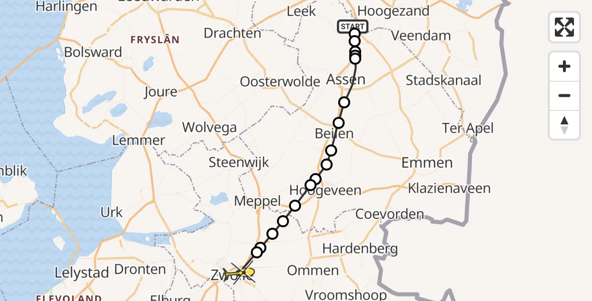 Op maandag 12 mei 2025 om 14:47 is er een Traumahelikopter vertrokken van Groningen Airport Eelde naar Zwolle. Het gaat om de Traumahelikopter met registratienummer PH-HVB. De vlucht duurde 34 minuten. Het toestel heeft in die periode 102 kilometer afgelegd met een gemiddelde snelheid van 181 kilometer per uur op een maximale vlieghoogte van 305 meter.