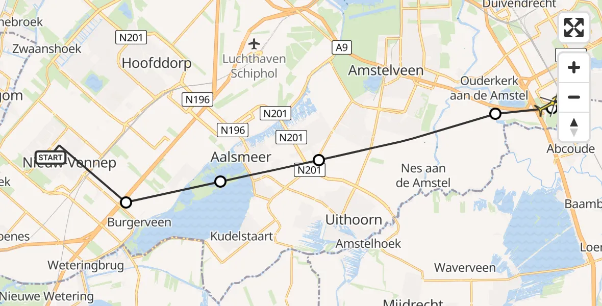 Op maandag 12 mei 2025 om 14:49 is er een Traumahelikopter vertrokken van Nieuw-Vennep naar Academisch Medisch Centrum (AMC). Het gaat om de Traumahelikopter met registratienummer PH-TTR. De vlucht duurde 9 minuten. Het toestel heeft in die periode 25 kilometer afgelegd met een gemiddelde snelheid van 161 kilometer per uur op een maximale vlieghoogte van 160 meter.