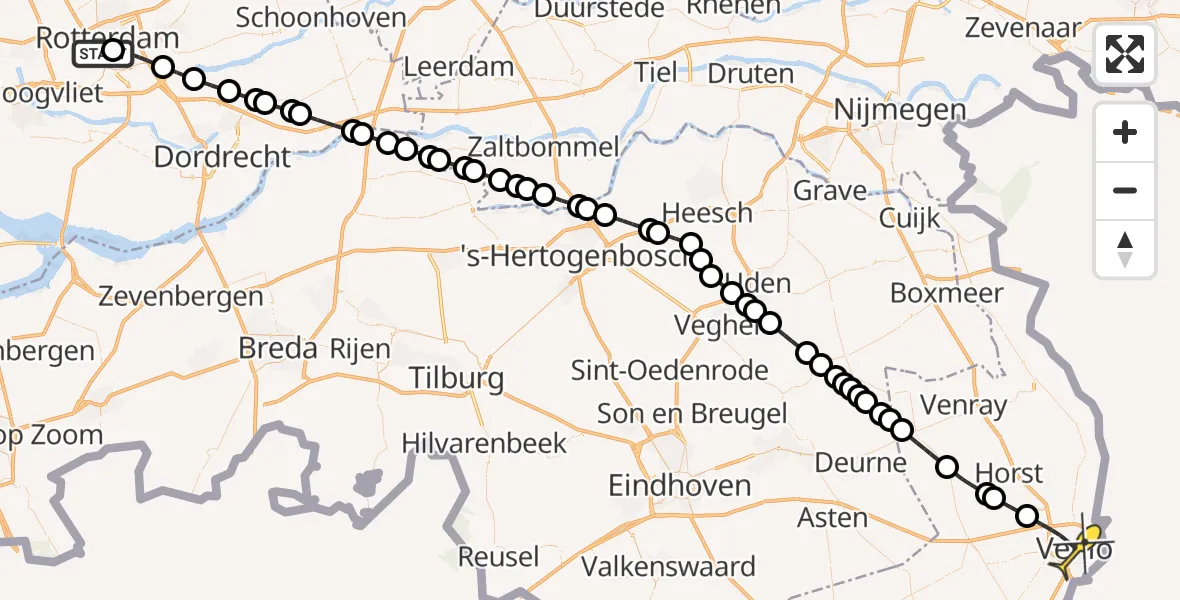 Op donderdag 15 mei 2025 om 0:37 is er een Traumahelikopter vertrokken van Erasmus MC naar Venlo. Het gaat om de Traumahelikopter met registratienummer PH-LLN. De vlucht duurde 34 minuten. Het toestel heeft in die periode 135 kilometer afgelegd met een gemiddelde snelheid van 242 kilometer per uur op een maximale vlieghoogte van 411 meter.