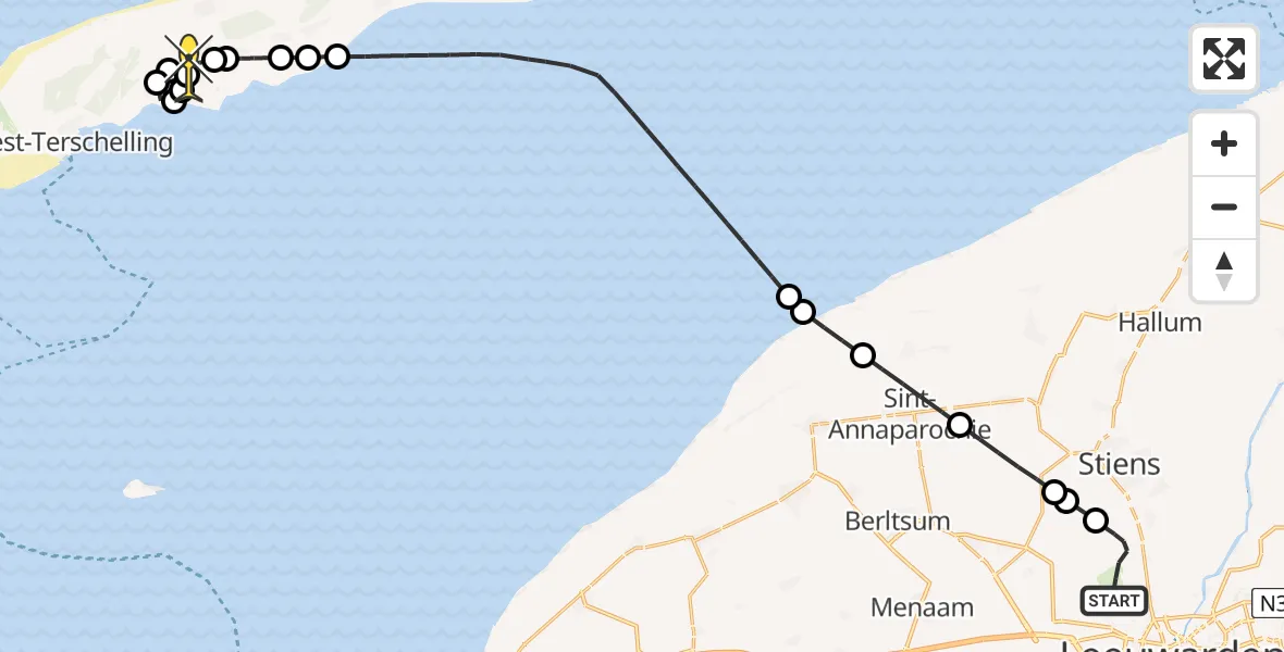 Op donderdag 15 mei 2025 om 2:05 is er een Ambulancehelikopter vertrokken van Vliegbasis Leeuwarden naar Midsland. Het gaat om de Ambulancehelikopter met registratienummer PH-HOW. De vlucht duurde 21 minuten. Het toestel heeft in die periode 45 kilometer afgelegd met een gemiddelde snelheid van 131 kilometer per uur op een maximale vlieghoogte van 419 meter.