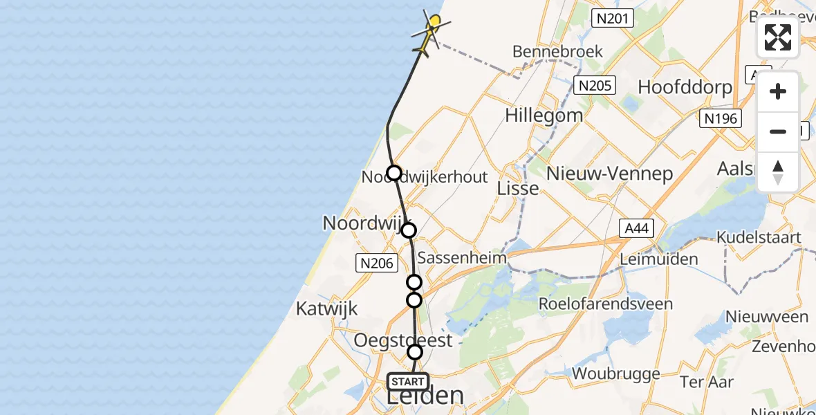 Op donderdag 15 mei 2025 om 17:38 is er een Traumahelikopter vertrokken van Leiden naar Zandvoort. Het gaat om de Traumahelikopter met registratienummer PH-DOC. De vlucht duurde 7 minuten. Het toestel heeft in die periode 19 kilometer afgelegd met een gemiddelde snelheid van 173 kilometer per uur op een maximale vlieghoogte van 122 meter.