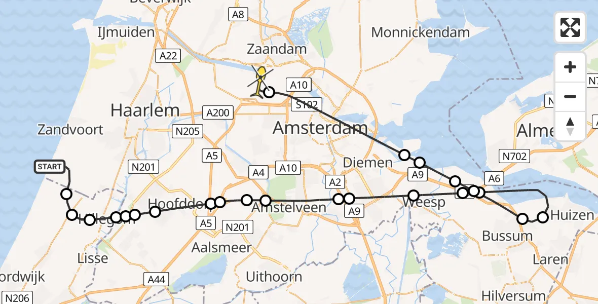 Op donderdag 15 mei 2025 om 17:45 is er een Traumahelikopter vertrokken van Zandvoort naar Amsterdam Heliport. Het gaat om de Traumahelikopter met registratienummer PH-DOC. De vlucht duurde 24 minuten. Het toestel heeft in die periode 88 kilometer afgelegd met een gemiddelde snelheid van 225 kilometer per uur op een maximale vlieghoogte van 236 meter.