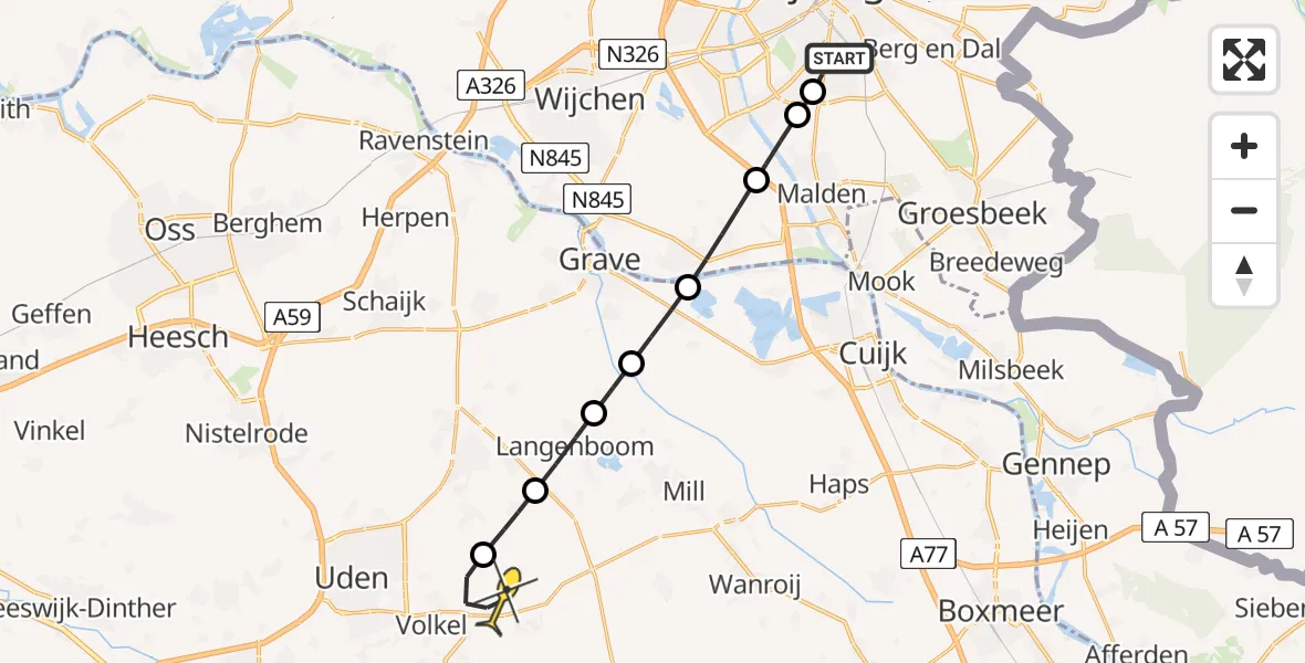 Op dinsdag 20 mei 2025 om 19:52 is er een Traumahelikopter vertrokken van Radboud Universitair Medisch Centrum naar Vliegbasis Volkel. Het gaat om de Traumahelikopter met registratienummer PH-UMC. De vlucht duurde 9 minuten. Het toestel heeft in die periode 25 kilometer afgelegd met een gemiddelde snelheid van 174 kilometer per uur op een maximale vlieghoogte van 267 meter.