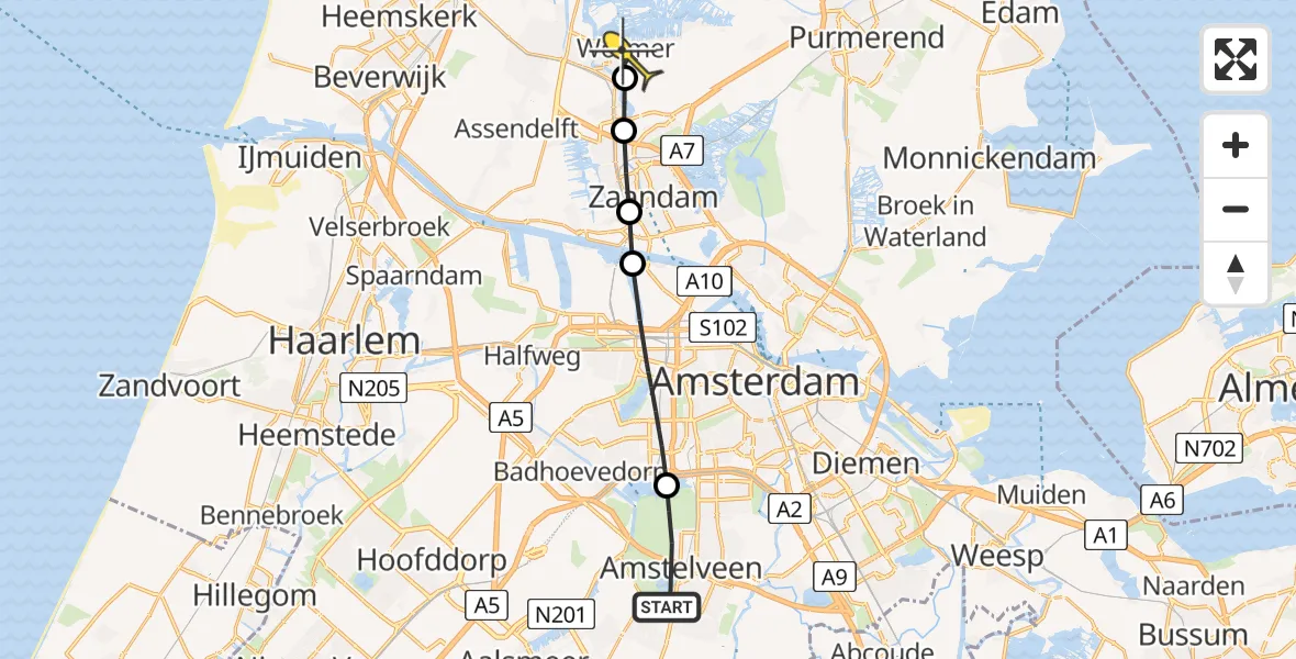 Op woensdag 21 mei 2025 om 18:12 is er een Traumahelikopter vertrokken van Amstelveen naar Wormer. Het gaat om de Traumahelikopter met registratienummer PH-DOC. De vlucht duurde 9 minuten. Het toestel heeft in die periode 24 kilometer afgelegd met een gemiddelde snelheid van 165 kilometer per uur op een maximale vlieghoogte van 190 meter.