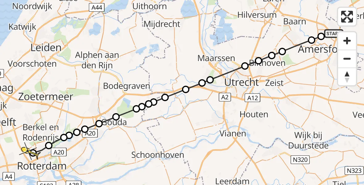 Op woensdag 21 mei 2025 om 19:04 is er een Traumahelikopter vertrokken van Amersfoort naar Rotterdam The Hague Airport. Het gaat om de Traumahelikopter met registratienummer PH-UMC. De vlucht duurde 21 minuten. Het toestel heeft in die periode 72 kilometer afgelegd met een gemiddelde snelheid van 211 kilometer per uur op een maximale vlieghoogte van 297 meter.
