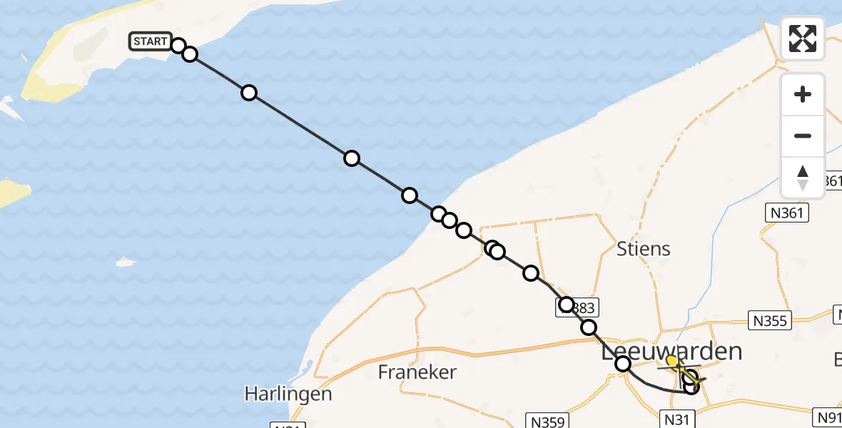 Routekaart van de vlucht: Ambulanceheli naar Leeuwarden, Landerum