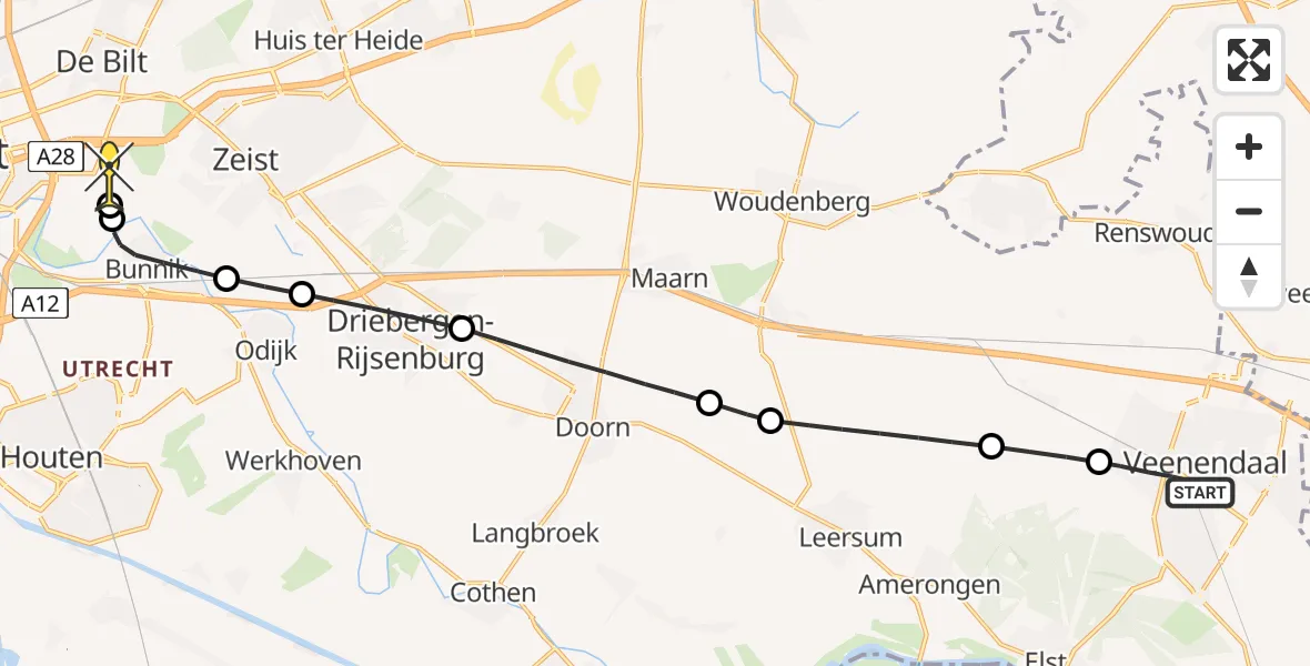 Op donderdag 22 mei 2025 om 18:00 is er een Traumahelikopter vertrokken van Veenendaal naar Universitair Medisch Centrum Utrecht. Het gaat om de Traumahelikopter met registratienummer PH-LLN. De vlucht duurde 11 minuten. Het toestel heeft in die periode 28 kilometer afgelegd met een gemiddelde snelheid van 152 kilometer per uur op een maximale vlieghoogte van 297 meter.