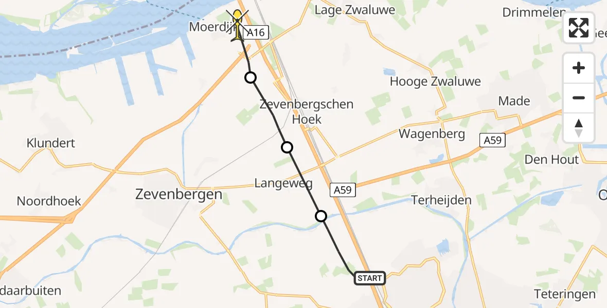 Op zaterdag 24 mei 2025 om 16:58 is er een Traumahelikopter vertrokken van Prinsenbeek naar Moerdijk. Het gaat om de Traumahelikopter met registratienummer PH-UMC. De vlucht duurde 6 minuten. Het toestel heeft in die periode 12 kilometer afgelegd met een gemiddelde snelheid van 112 kilometer per uur op een maximale vlieghoogte van 137 meter.